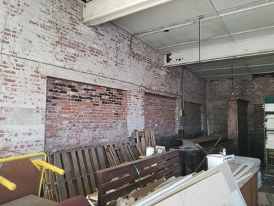 Exterior improvements include door and window replacement, roof replacement, coffee shop drive-through, covered patio addition, and ADA sidewalks and entry. Energy conservation measures include a weather barrier and insulation of the existing brick walls, R-25 roof insulation, thermally broken window framing and insulated glazing, HVAC equipment and controls modernization, and all new LED lighting.